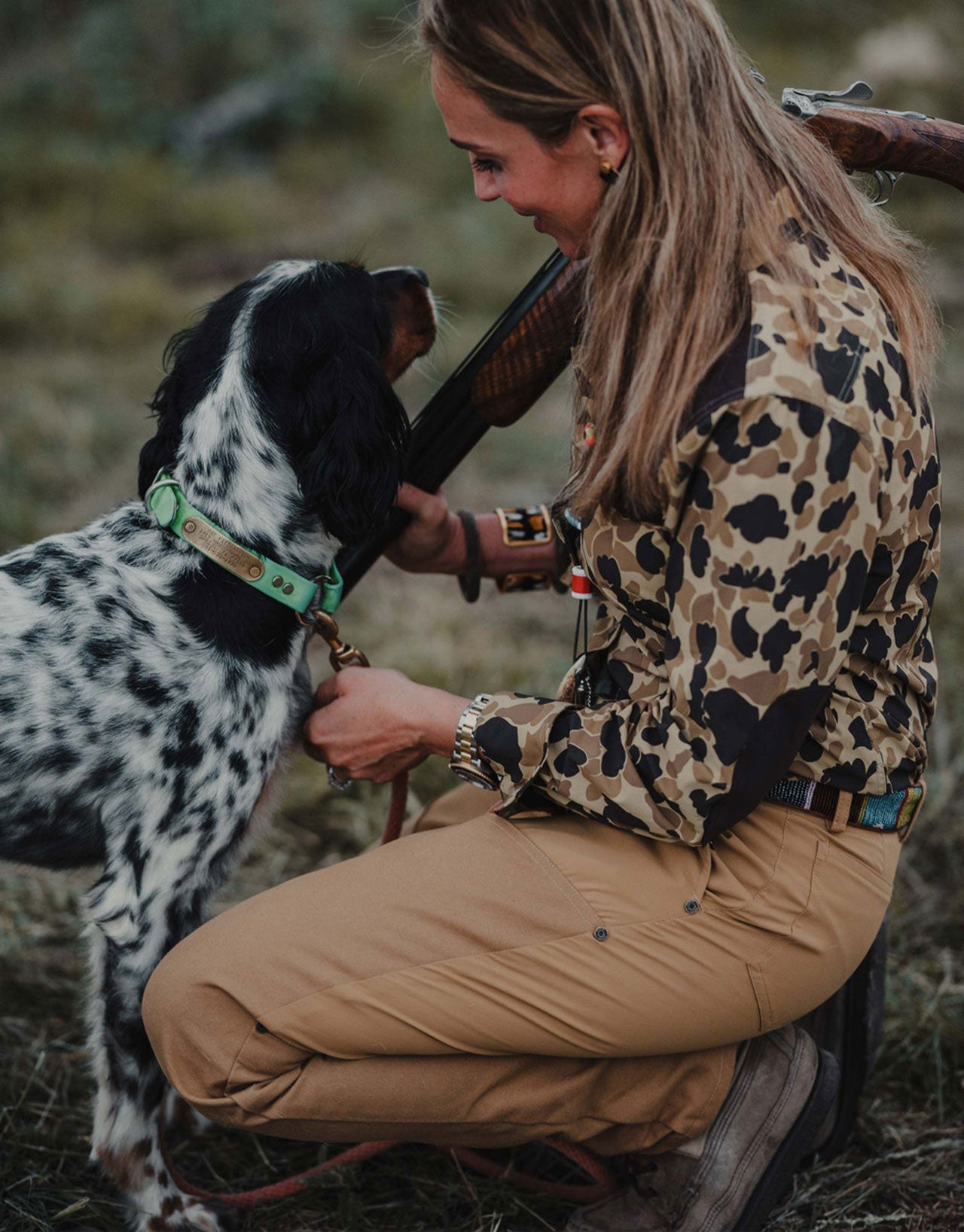 We worked with fellow hunter and conservationist, Britt Longoria to perfect the fit of these pants. The Active+ Joan Field Pant features a medium rise that sits at your natural waist line and a tapered leg through the thigh and calf. There's just the right amount of room to be worn over a boot or tucked into a boot without bunching.