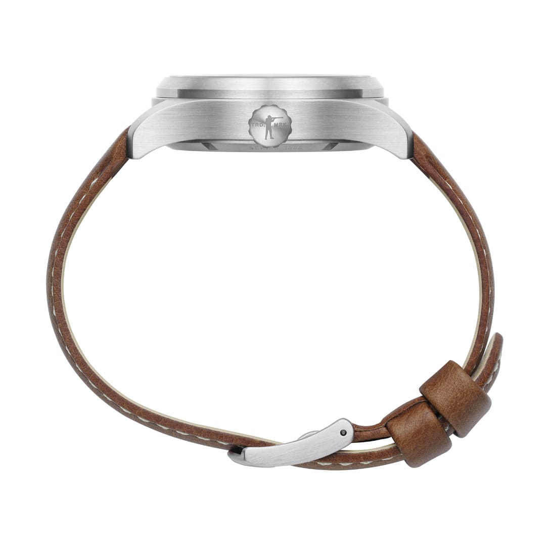 - Strap: Brown Leather Strap with Stainless Steel Brushed Signature Buckle, 24/22mm