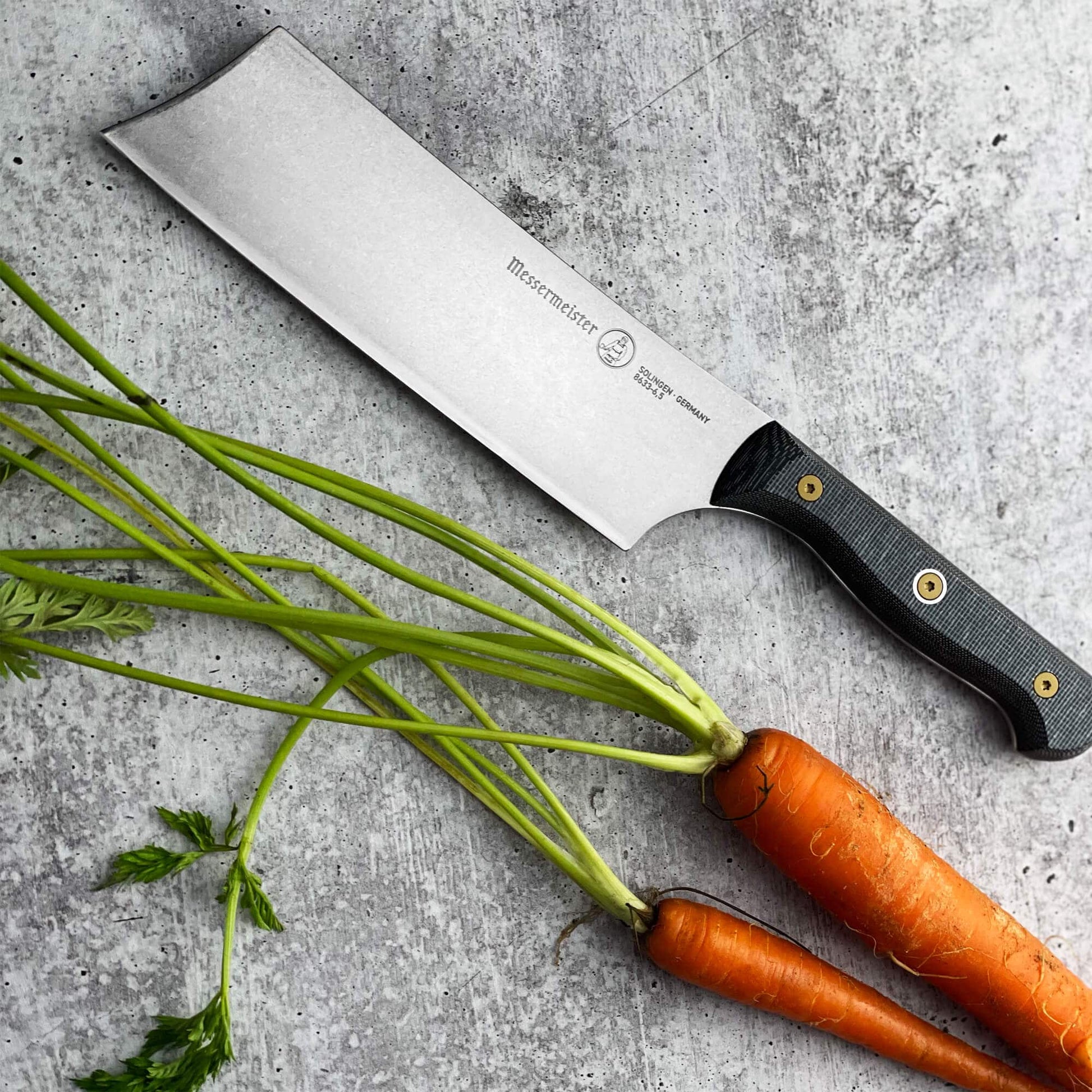 Crafted from cold-rolled steel and laser cut for exceptional accuracy, the blade features a durable ceramic stonewashed finish that enhances both performance and style. Whether you’re slicing butternut squash, chiffonading basil, or dicing onions with smooth efficiency, the Nakiri’s precision and balance make prep work feel effortless.
