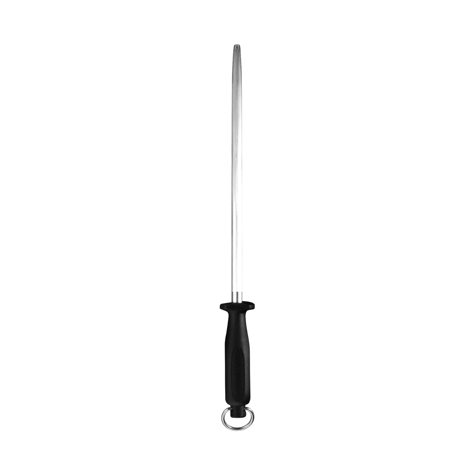 Maintain a razor-sharp edge with the Messermeister Fine Grit Honing Steel - 12". Designed for regular maintenance between sharpenings, this steel realigns the edge of your knife blade to keep it performing at its best. The fine grit surface gently hones without removing excessive metal, making it ideal for high-quality knives. At 12 inches, it provides ample surface area for longer blades while offering control and balance with its ergonomic handle. Whether you're a home cook or a professional chef, this honing steel is an essential tool for preserving edge retention and prolonging the life of your knives.
