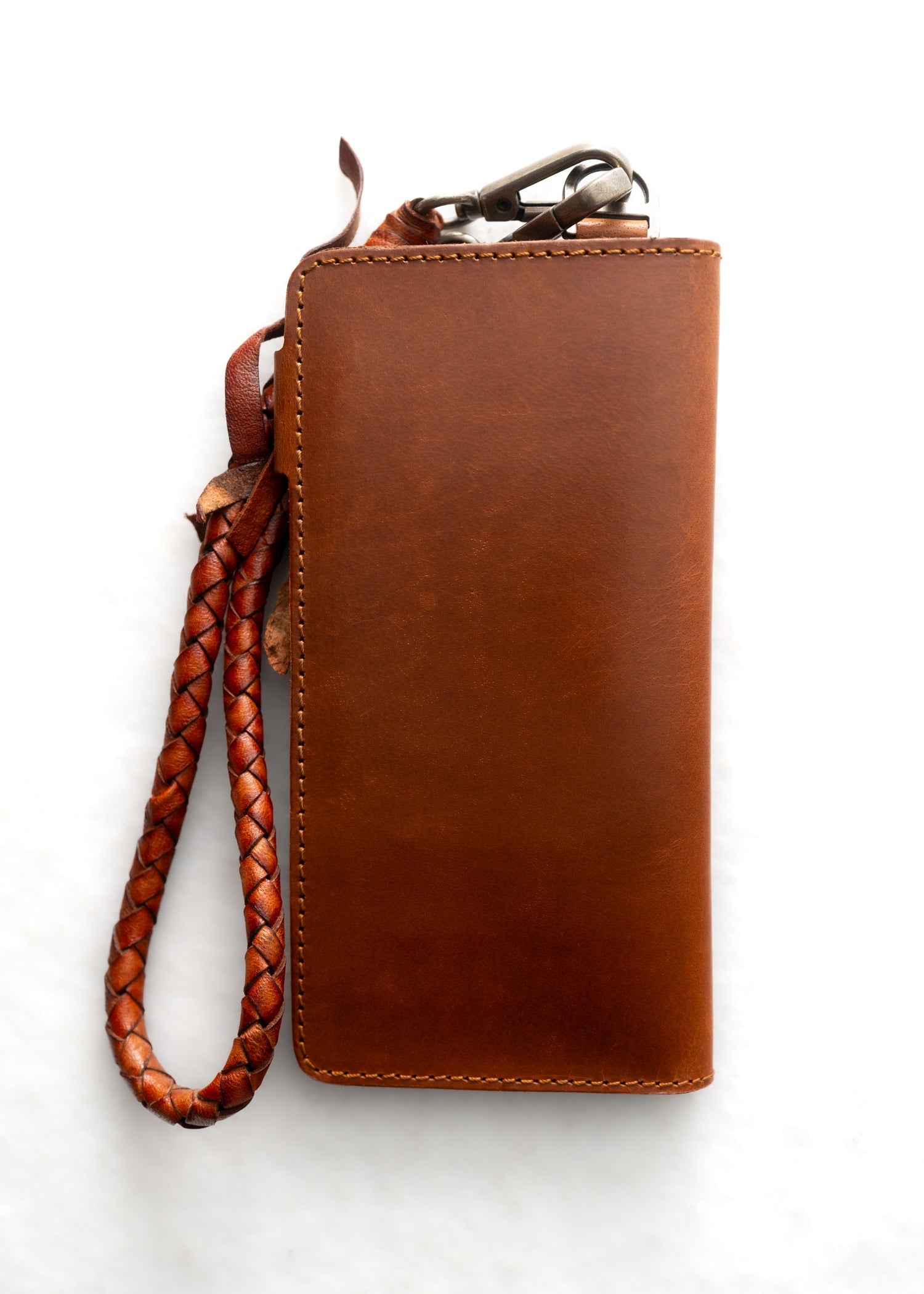 Built for long hauls and dusty trails, the Explorer Wallet is a timeless long-style wallet designed with utility and character in mind. Crafted from rich, vegetable-tanned leather and finished with antiquated brass hardware, it features a secure snap closure and a removable leather tassel for a bit of charm. Inside, it’s all function: a dedicated ID window, four card slots, and an open section for cash or receipts. It's the kind of wallet that picks up a patina and a story as you go.