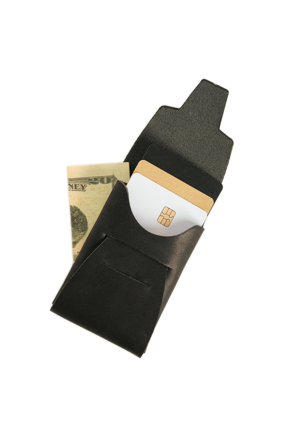 With a pocket for cards (up to 6-8 easily!), and a simple divider for twice-folded cash, receipts, or a quick-draw card pocket, the Johnny Wallet folds into itself, and holds everything you need with no frills.