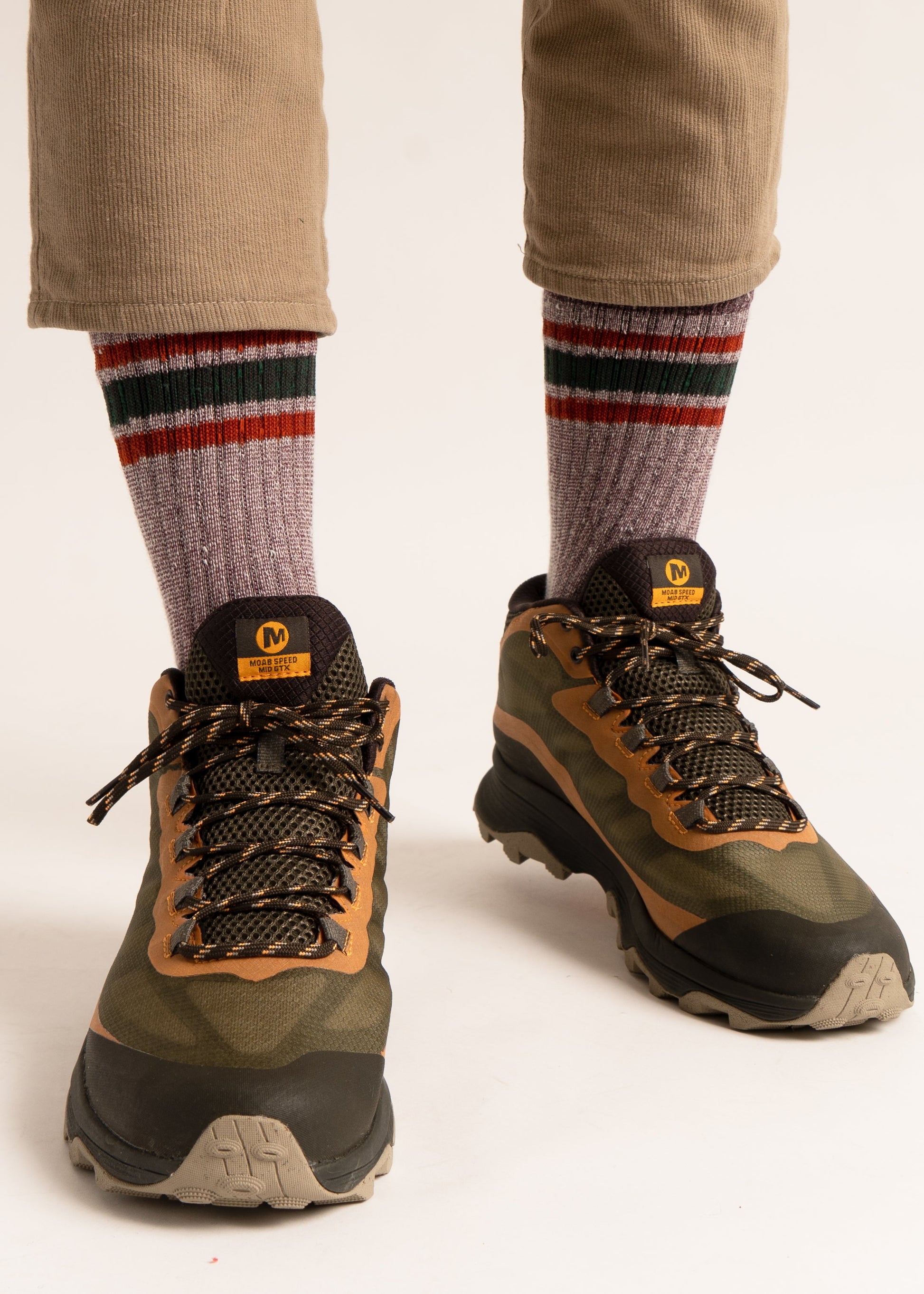 This is the sock you can wear for days. We're lucky to use American-sourced Merino wool that's soft, warm, and moisture-wicking, also making it inherently anti-bacterial. The interior of the sock is terry-knit with big loops of soft yarn to create a padded layer for comfort. It was made with boots in mind, but it's definitely not too thick to be in a standard sneaker.