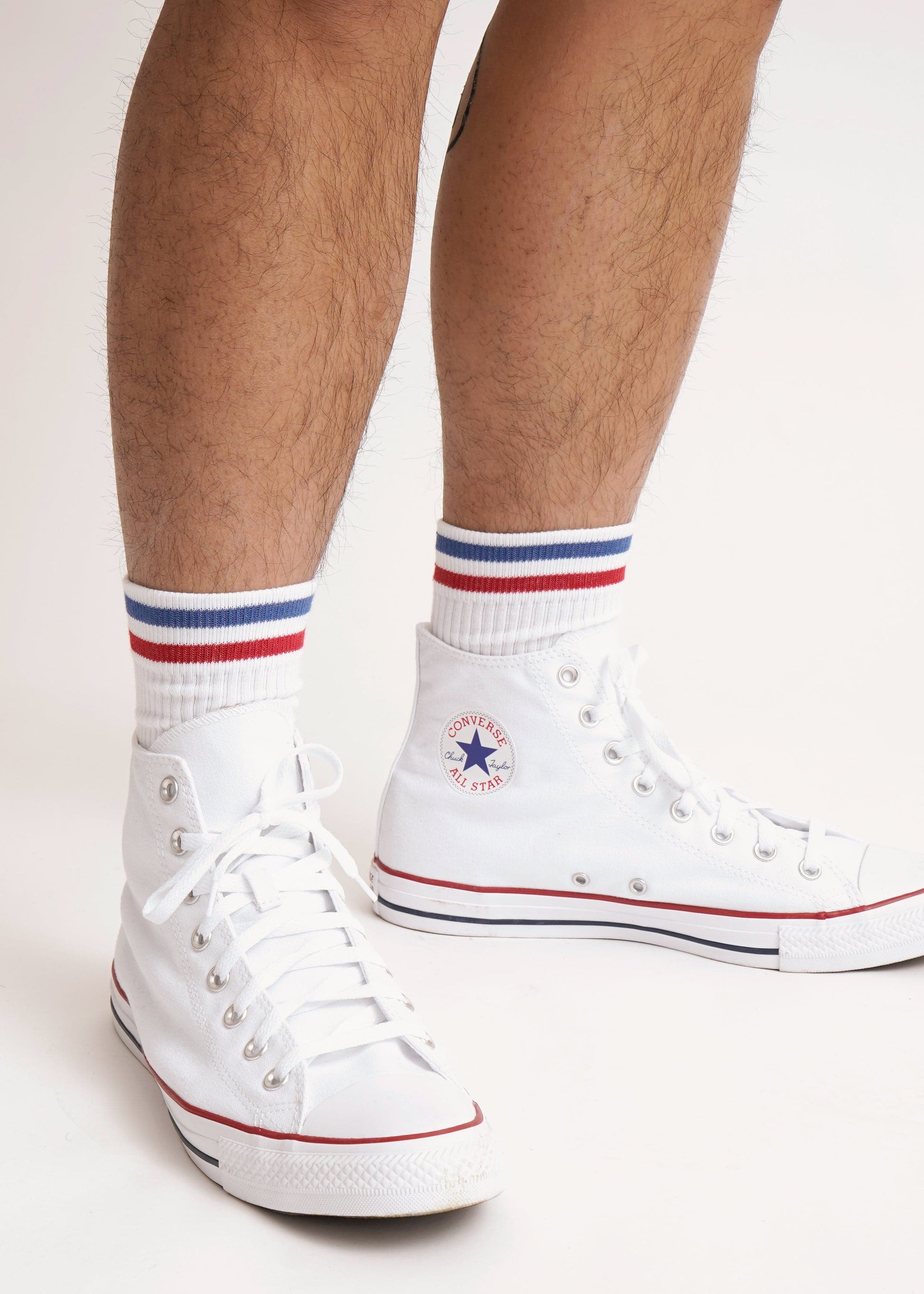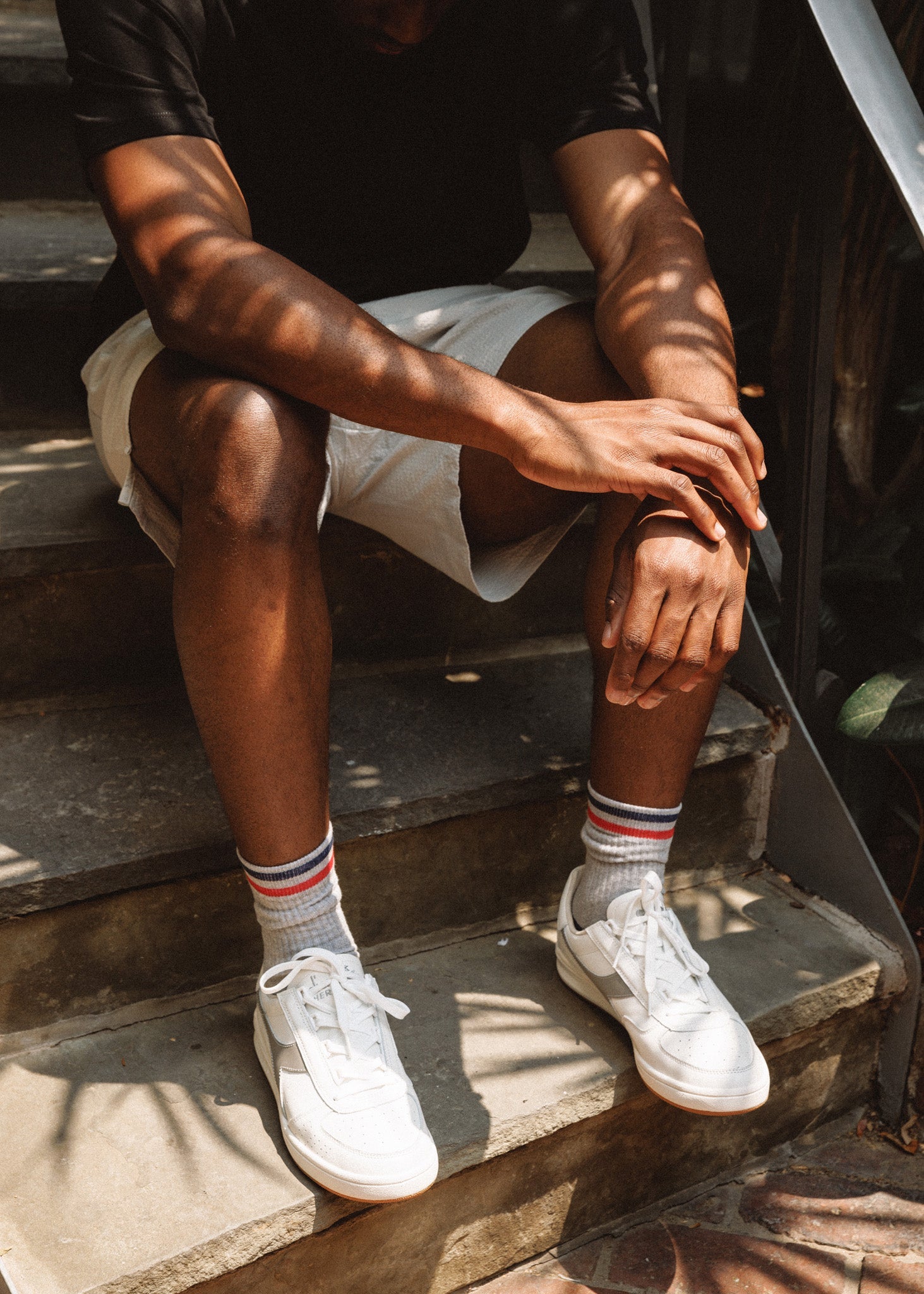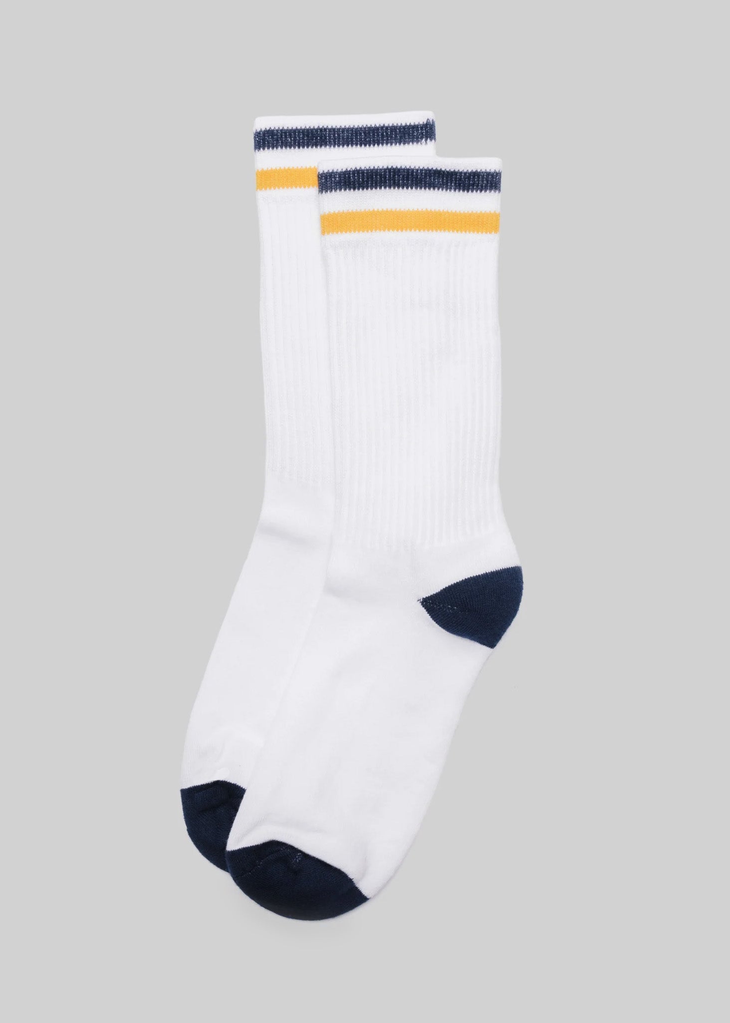 The Kennedy Crew pays homage to JFK's effortless style, combining elements of retro and modern fashion. Entirely made in USA, from material to manufacturing, these crew-length socks are knit from some of the finest cotton in the world.