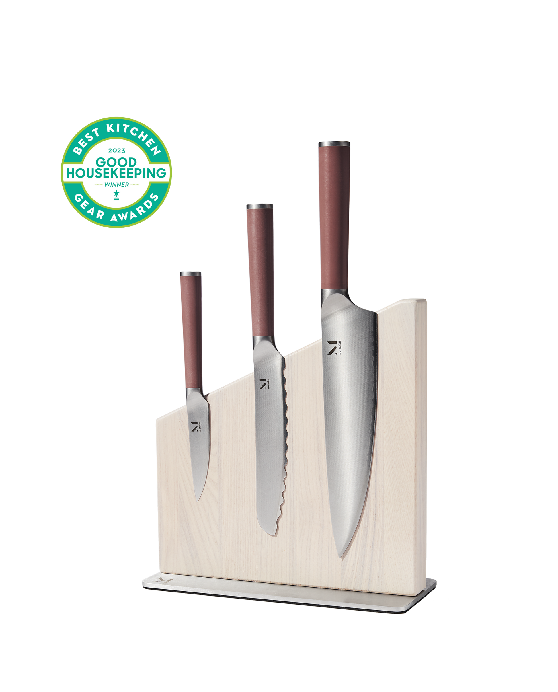 Our bestselling chef's knife set designed to be displayed. Our trio of knives are made from Japanese stainless steel and high carbon to be meticulously sharp and incredibly resilient. Their perfect match? The Stand, which we designed to store your knives in a show-stopping yet practical way, with an entirely magnetic wooden body.