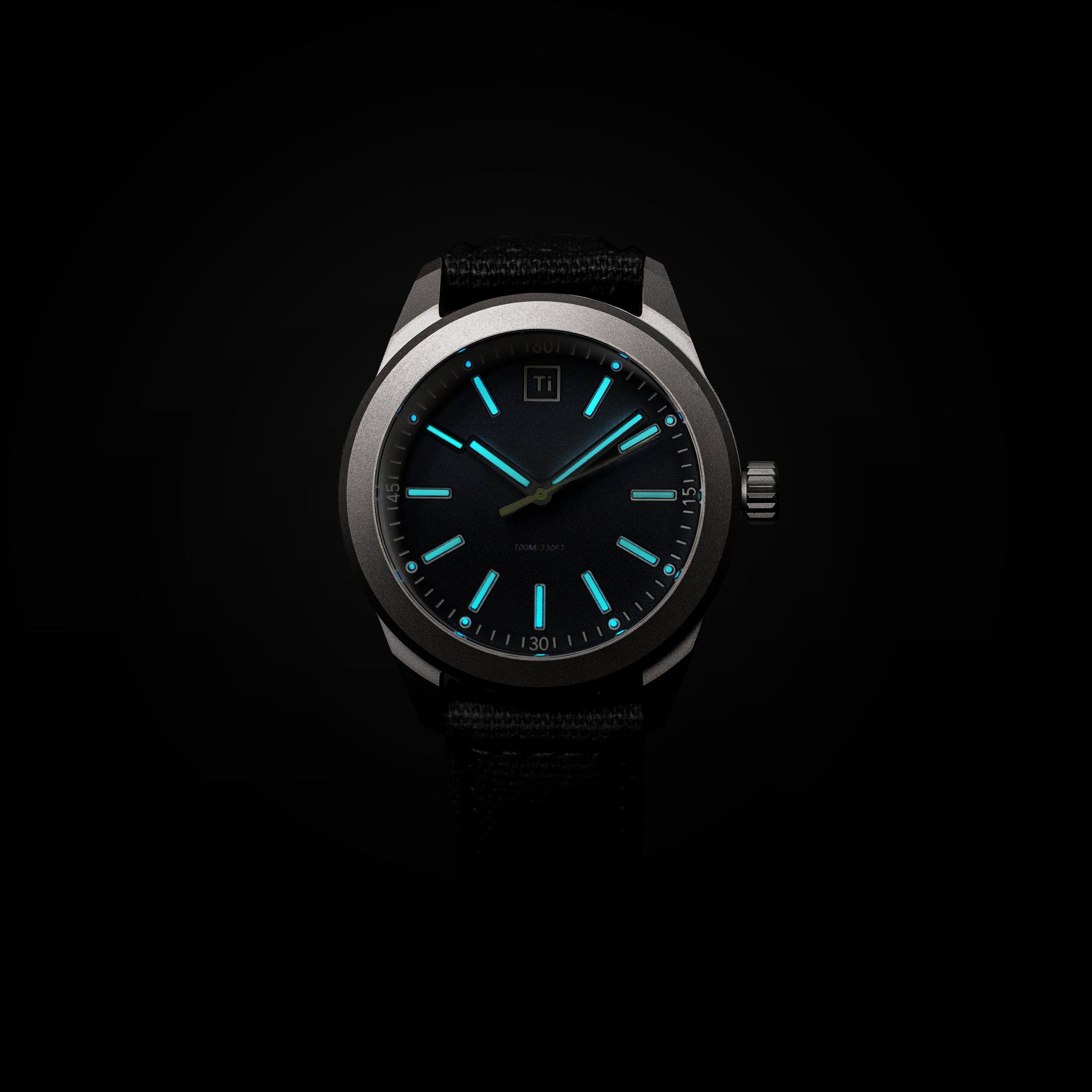 •Two Piece Canvas Strap W/ Leather Backing and Titanium Buckle