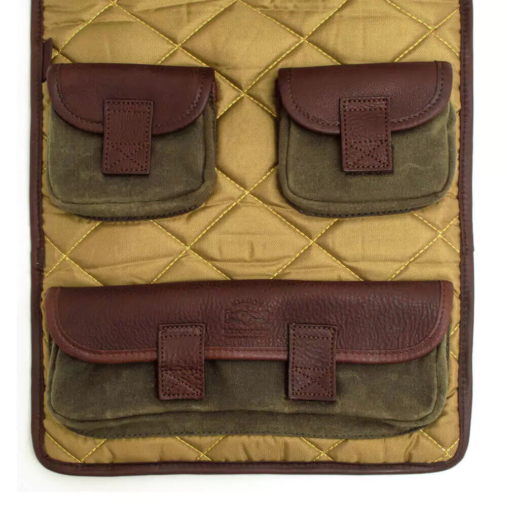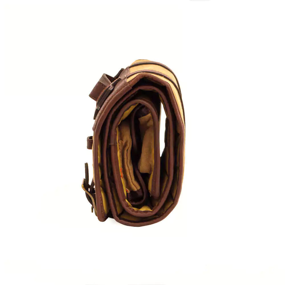 Expertly handcrafted with weather-resistant 18 oz waxed cotton canvas and thick full-grain US steerhide leather, you'll confidently clean and maintain your firearms in comfort and style. Our Vintage Camo version is an extremely durable, weather-resistant, double-layered polyester fabric and has a higher heat resistance than nylon cordura.